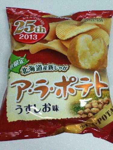 今夜は昨日に引き続いてのア・ラ・ポテト。 味は、うすしお味をチョイスです。 じゃがバター味もおいしいのですが、やはりこの定番のうすしお味は外せませんよねぇ~。 ポテトに塩だけというシンプルな味付けなのに、なんでこんなにおいしいんでしょう? ち…