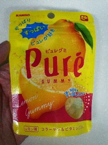 なんとも鬱々として寝られないので、今夜は寝る前にグミなんぞを摘んでみたいと思います。 そんな今回選んだのは、このレモン味のピュレグミ。 やわらかいグミを食べたい気分だったのが、ピュレグミを選んだ理由です。 うひょー!すっぺー!うめぇー!(゚▽゚) …