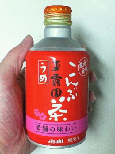 今夜は汗をかきまくったので、のんびりバスタイムの後は冷たい飲み物で一息つくことに…。 そんな今回は、アサヒの玉露園うめこんぶ茶をチョイス。 うめの爽やかな香りと、サッパリとした冷たいお茶で涼しくなる予定でしたが…。 オェー!なにこれ…クッッッッ…