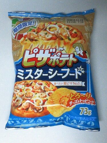 残暑も落ち着いてきて、ようやく過ごしやすくなった本日…。 そんな今夜はのんびりと、ミスターシーフード味のピザポテトで夕食にしてみたいと思います。 これはシーフードをイメージしたピザポテトのようですが、ピザ味のような雑多な味の前では、あまり違い…