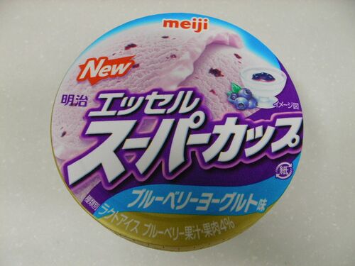 長風呂の後に食べるアイスは最高! ってことで今夜も早速お楽しみを頂くわけですが、そんな今回はブルーベリーヨーグルト味のエッセル スーパーカップをチョイス。 エッセルのスーパーカップは、手頃感があって良いですよねぇ~。 見た目はブルーベリー味と…