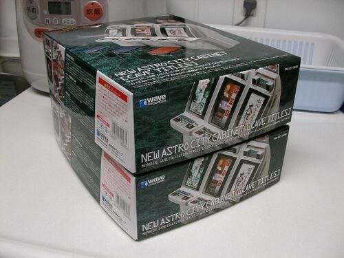 チャンコロナウイルスのせいで、宅配も遅れ気味…。 ようやく夕方になって、予約していたニューアストロシティ筐体[ケイブ タイトルズ]が着弾です! 今回はケイブ タイトルズということで縦画面状態が標準になっており、ハメ込み用のディスプレイ画面シートは…