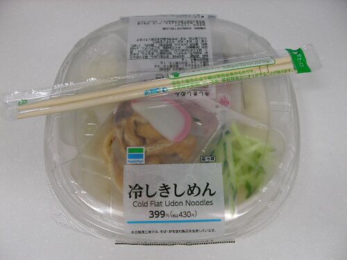 昨夜は通勤で靴擦れが発生。かかとが血だらけで歩くと痛い状態に…。毎日靴を履いて歩いていないと、かかとの皮が弱くなることに驚愕な現在です。 で、こんなこともあろうかと、会社帰りにファミマで買っておいた冷しきしめん…マジ助かる。 というわけで早速…