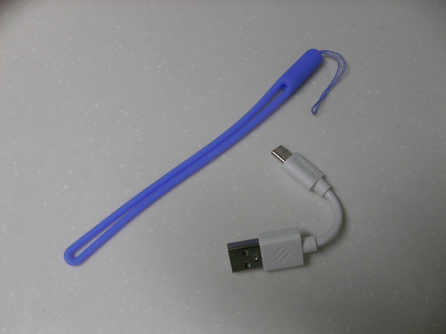 添付品は、ストラップとUSB A to C変換アダプタの2つ。