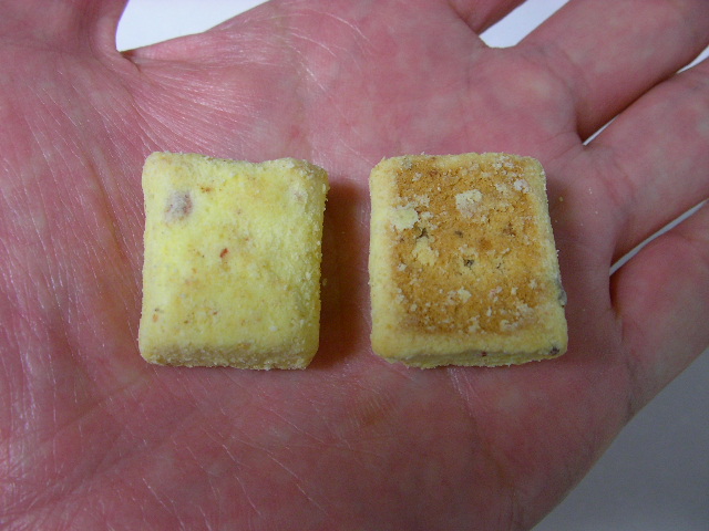 表面はプリン色、裏面はカラメル色とプリンっぽい見た目をしてはおりますが、味自体はプリン感がまったく無し…。